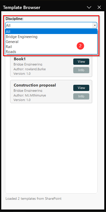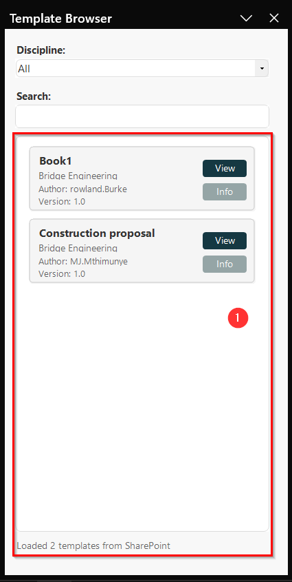 - βΉοΈ Info β Displays details about the template, such as its author, version, and discipline.
