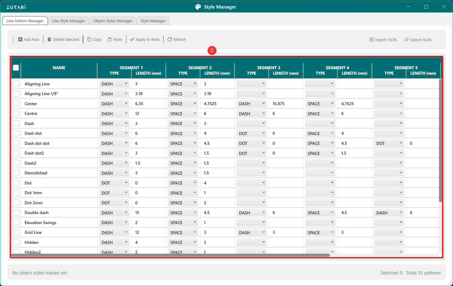 - View and modify line patterns and apply changes to Revit. The viewport shown in figure 1.2 below shows the line patterns segments which can be updated.