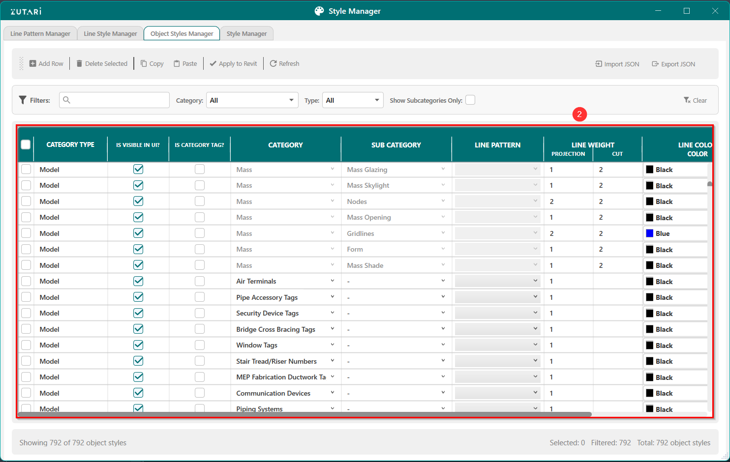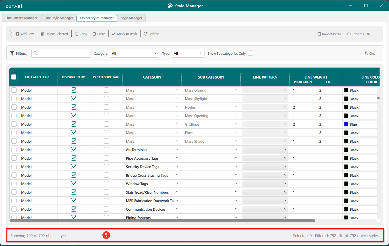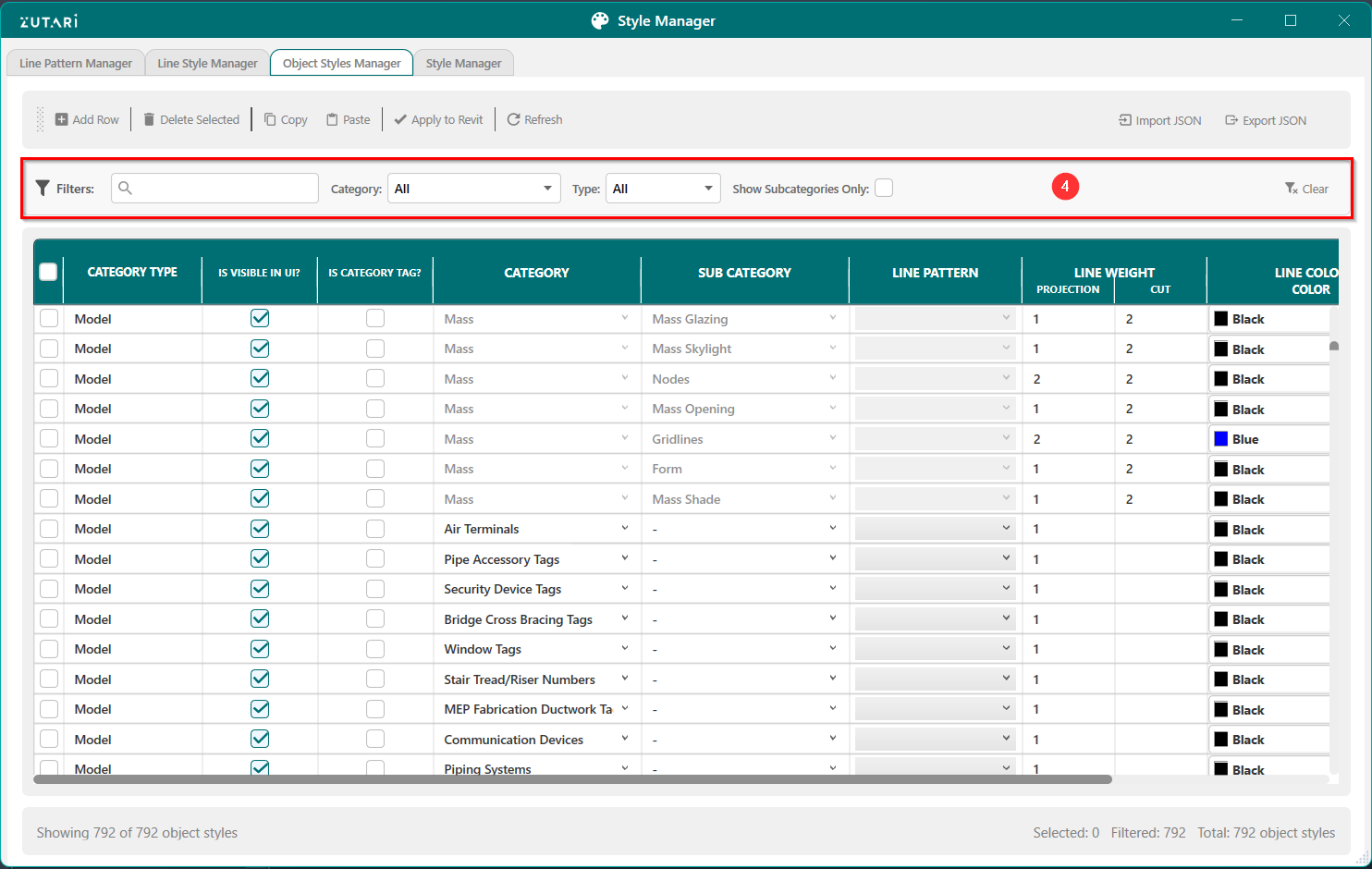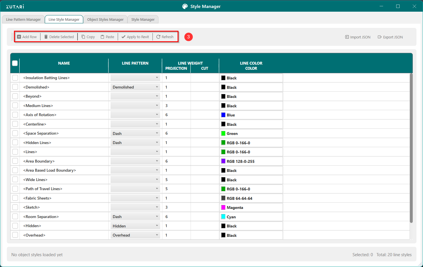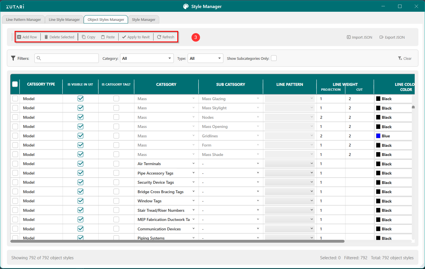 - Create, update, and modify object styles and apply changes in Revit. The buttons in the left of the Toolbar in figure 3.3 below allows us to create new object styles, update object styles and copy existing object styles to later apply the changes to Revit.